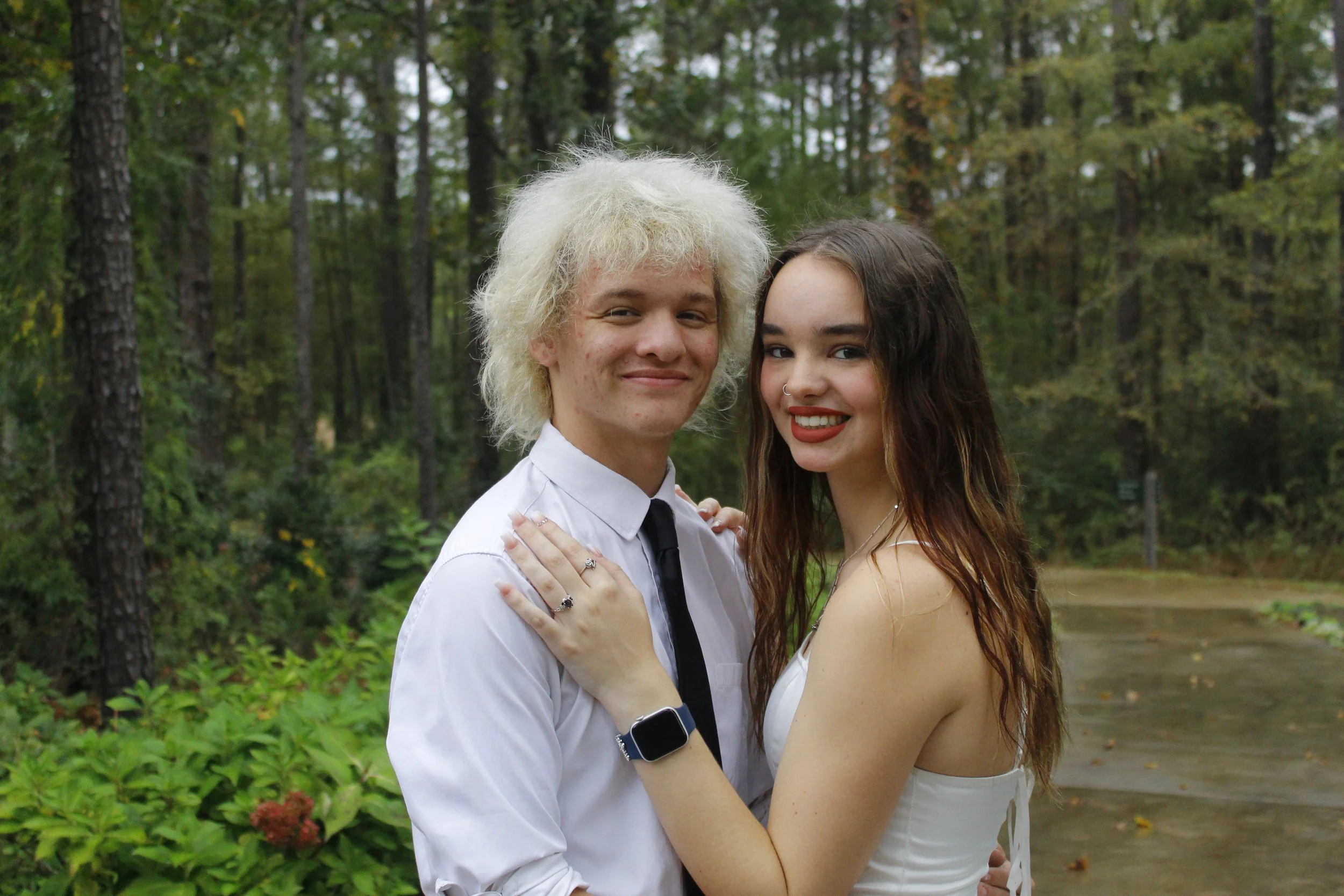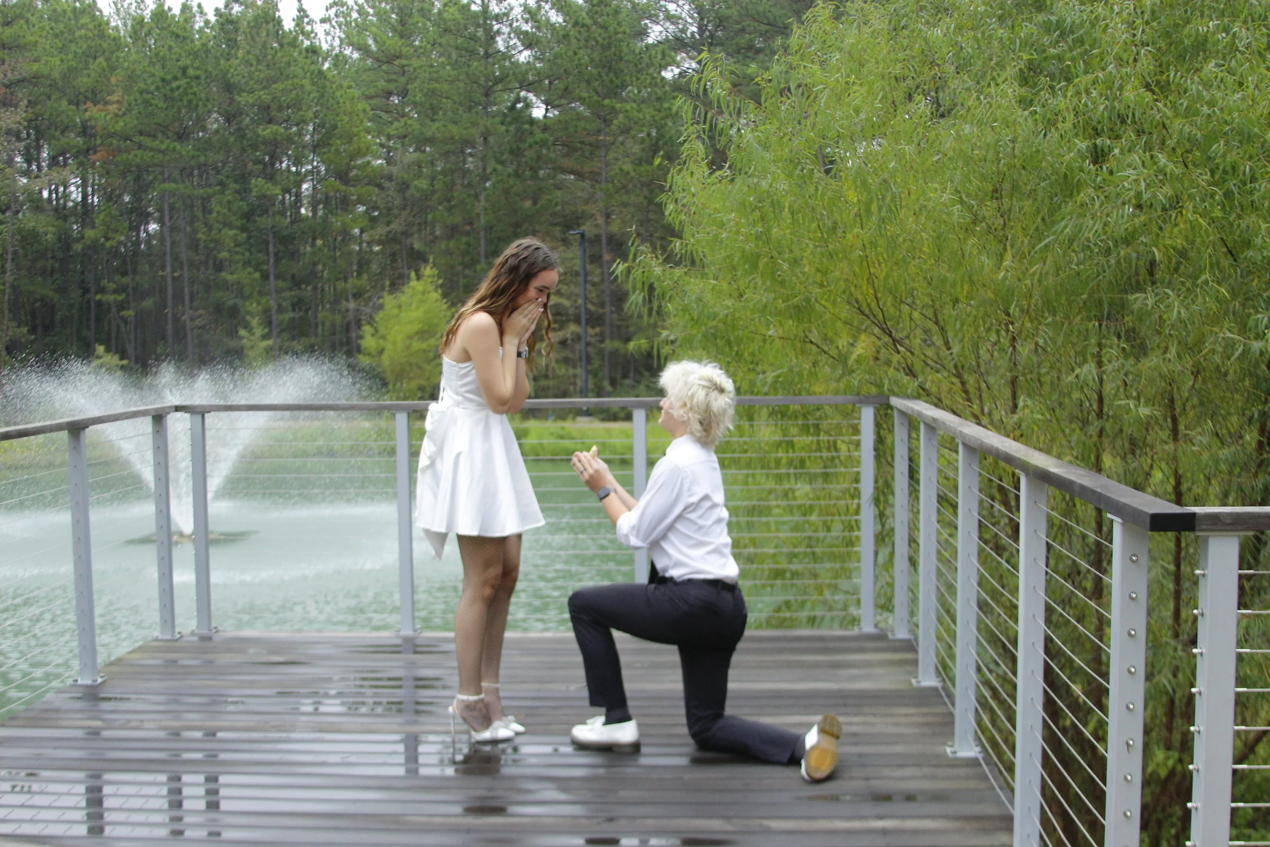 Sam and Ben met through a mutual friend while they were in high school.. on Snapchat. Sam told Ben to stop being on his phone while driving, which made them start getting to know each other. They hit it off and got together on June 27th, 2022. Fast forward a bit, all the way to November 17th, 2023, Ben mock-proposed with a promise ring and she obviously said yes. While planning their actual actual proposed, Ben slipped up and Sam figured out the whole plan. So he then he made a new one (or so she thought).. The anniversary of the mock-proposal was coming around and they were going to have pictures taken, and nothing more. As suspicious as that sounds, Samantha was convinced that the ring was lost in transit so she had no idea whatsoever. November 17th, 2024, Ben proposed to Samantha, for real this time. As of now, they are planning their lives together and raising their new puppy Cleo. Wish them luck!